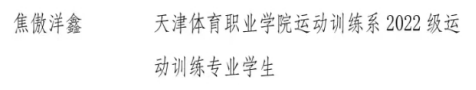 近日,在五四青年節(jié)即將到來之際,共青團(tuán)天津市委員會(huì)下發(fā)《關(guān)于表彰第23屆“天津青年五四獎(jiǎng)?wù)拢w)”、2024年“天津市五四紅旗團(tuán)委(團(tuán)支部)”、“天津市優(yōu)秀共青團(tuán)員”、“天津市優(yōu)秀共青團(tuán)干部”的決定》(津團(tuán)發(fā)〔2024〕5號(hào)),其中我院運(yùn)動(dòng)訓(xùn)練系2022級(jí)學(xué)生焦傲洋鑫榮獲“天津市優(yōu)秀共青團(tuán)員”榮譽(yù)稱號(hào)。