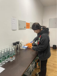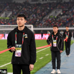 體職院的30名志愿者按照崗位分成兩組,一組在賽場內拉隔離帶、維護賽場采訪秩序,一組在新聞發(fā)布廳、媒體看臺區(qū)、混合采訪區(qū)、餐飲區(qū)負責首發(fā)名單的接收與傳遞、儲物柜管理、設備檢查、秩序引導、收發(fā)物資、機動協(xié)調等工作。