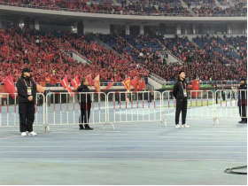 賽場內的學生志愿者,按照組委會工作人員要求,快速到位,站立昂首挺胸,精神十足,隔離帶拉得筆直,有效協(xié)助維護了賽場內的采訪秩序。