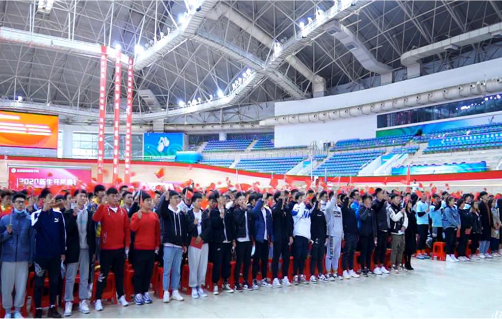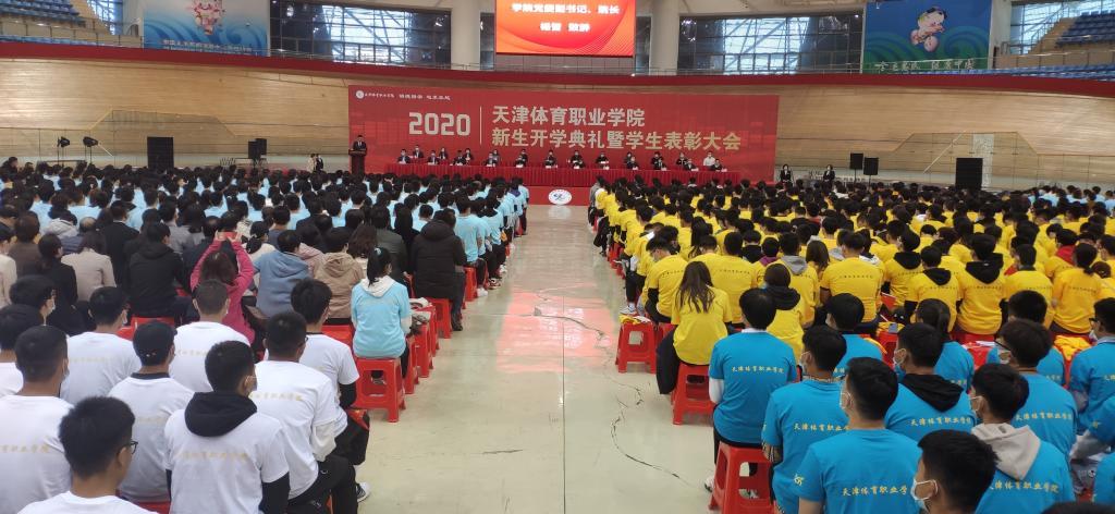 金秋十月,金果飄香。10月23日上午,天津體育職業學院2020級新生開學典禮暨表彰大會在團泊體育中心自行車館隆重舉行,來自全國各地的1200余名新生共赴盛典,開啟大學生活新征程。市體育局局長、黨組書記李克敏,黨組成員、副局長李桂峰,局辦公室、宣教法規處相關同志,體育產業協會、企業代表及學院全體領導班子出席典禮,典禮由院黨委書記王偉主持。