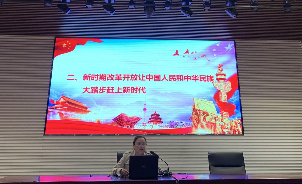 李樂講授了“在習近平新時代中國特色社會主義思想指引下為實現中國夢繼續奮斗”和“以歷史和科學的眼光認識70年社會主義革命、建設和改革的現實啟示”兩方面內容,講述了十八大以來黨和國家事業歷史性變革和歷史性成就,中華民族前所未有地接近實現中華民族偉大復興的目標,而共產黨之所以取得如此巨大的成就,就在于始終堅持以人民為中心、堅持從國情出發、堅持世界眼光和開放胸襟,不斷促進改革開放、不斷加強先進性和純潔性。