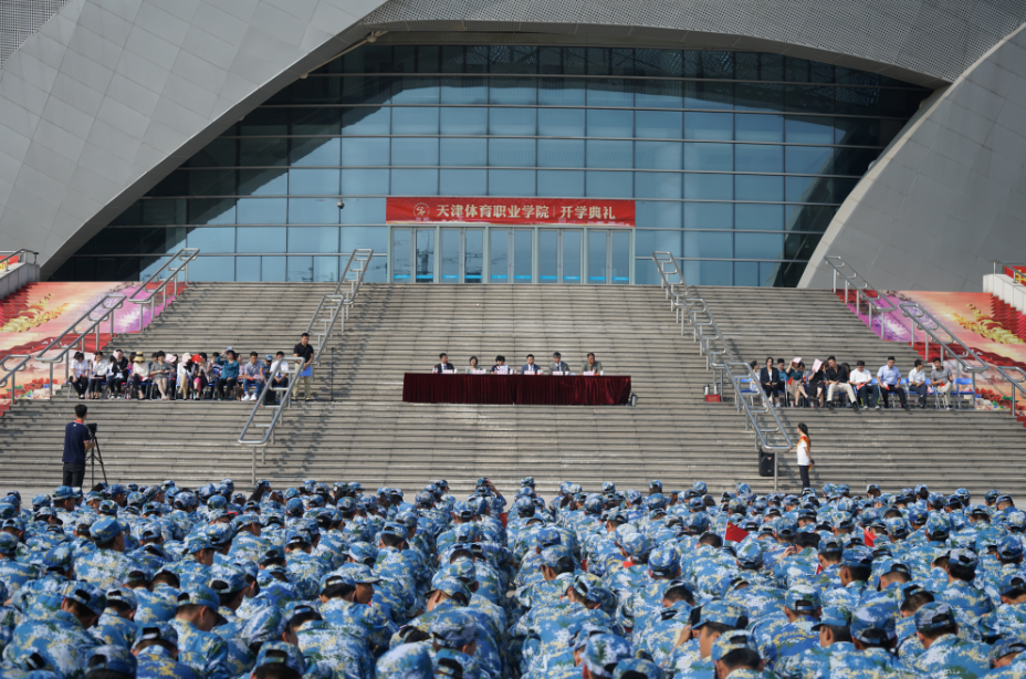 9月30日上午,體職院2019級新生開學典禮暨軍訓匯報表演匯演在團泊體育中心自行車館前廣場隆重舉行。市體育局黨委書記、局長李克敏,市體育局黨委委員、副局長張欣,市體育局宣教法規處處長雷靜,天津儀仗精英軍事訓練基地主任于祥杰及學院領導班子成員出席典禮,學院全體教職員工和2019級全體新生參加。典禮由院黨委書記王偉主持。