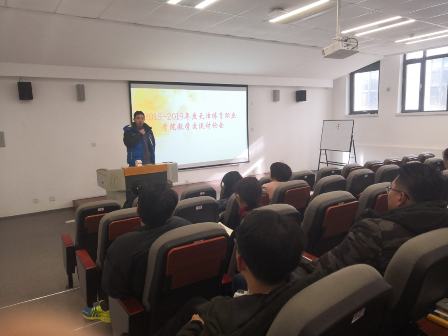2019年1月14日上午,2018-2019年度天津體育職業學院教學交流討論會在第一階梯教室召開,院黨委副書記、院長劉欽龍、全體教師參會,教務處負責人主持會議并對2018年教學工作進行總結。