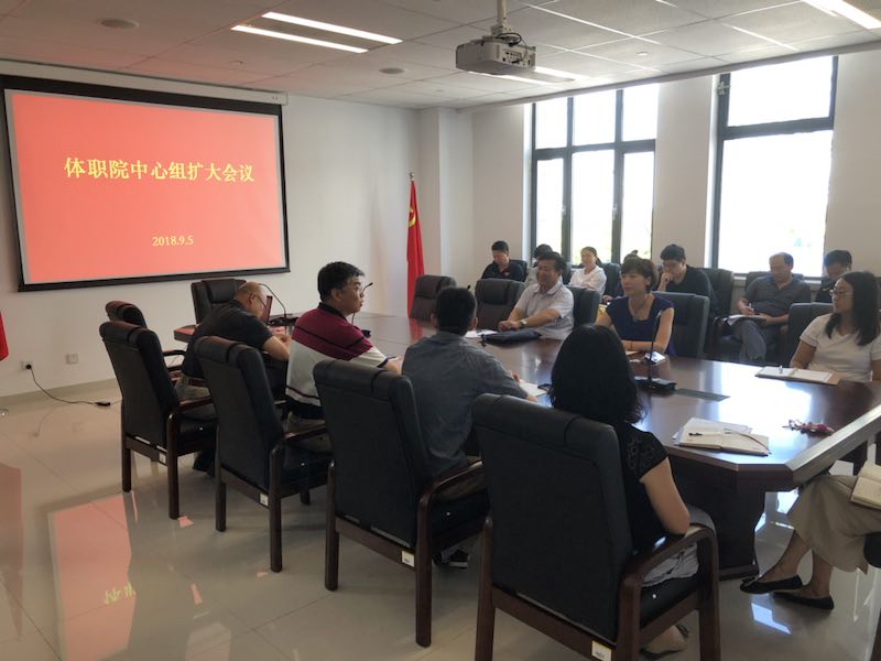 9月5日下午,體職院召開中心組擴大會,體育局黨委副書記王洪出席,院黨委書記王偉主持,院長劉欽龍,各系部、處室負責人、各支部書記參加。