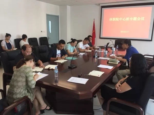018年8月17日上午,體職院召開理論中心組擴大會,學院在校領導班子成員出席,各處室、系部負責人,各黨支部書記參加。