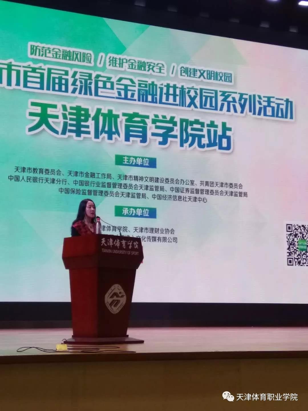 2018年5月11日,根據市教委《關于做好“金融知識進校園公開課”組織工作的通知》要求,我院體育運營與管理系全體學生在學生處副處長趙雪的帶領下參加由天津市教委、市金融局、市文明辦、團市委、中國人民銀行天津分行、天津銀監局、天津證監局、天津保監局、新華社中國經濟信息社天津中心共同舉辦“防范金融風險 維護金融安全 創建文明校園——天津市首屆綠色金融進校園系列活動金融知識進校園公開課天津體育學院站”的活動。