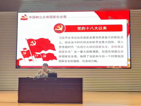 課程中,緊緊圍繞著總體國家安全觀、牢固樹立總體國家安全觀、切實履行維護國家安全的職責使命、堅持黨對國家安全工作的絕對領導、貫徹習近平新時代總體國家安全觀十個堅持,這五個方面為同學們展開講解。為了更全面的了解國家安全,與同學們普及國家安全相關法律知識。通過實際的案例,警醒各位同學時刻不忘國家安全這根弦。2023年4月15日是第八個全民國家安全教育日,要堅持以總體國家安全觀為指導,結合深入學習黨的二十大精神,結合實際,推動大安全理念深入人心、落地生根。