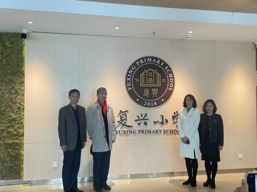 最后,簽約授牌儀式結束后,與會嘉賓合影留念。為了表示雙方共建共育共享的美好愿景,雙方領導在復興小學logo旁合影。