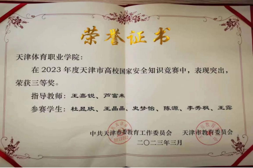 本屆高校國家安全知識競賽由中共天津市委教育工作委員會、天津市教育委員會主辦。我院在接到本次比賽的通知后,由學生處積極組織,以深入學習貫徹習近平總書記關于加強國家安全教育的重要指示要求和本次比賽的相關文件要求,推進國家安全教育工作在高校廣泛深入普及,引導學生提升國家安全意識,樹立總體國家安全觀,我院以本次國家安全知識競賽選拔為契機,宣講參加此次活動的重要性,讓我院學生了解活動的意義,產生參加活動的自覺。通過前期宣傳與選拔,最終6名學生作為本次比賽的正式隊員,兩名輔導員作為本次知識競賽指導教師。通過讓學生親身參與,在理論識記中學習安全知識、增強國家安全意識和素養,檢驗同學們對于國家安全知識的掌握程度,包括基本概念、政策法規、網絡安全、反恐維穩、涉外安全、戰略布局等多個方面,以期增加參賽者對國家安全各領域的了解。