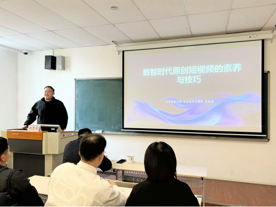 為深入學習貫徹黨的二十大精神和習近平文化思想,認真落實習近平總書記關于宣傳思想文化工作的重要指示和2024年學院宣傳文化工作會議精神,提升學院宣傳思想工作隊伍的專業素養和業務能力,11月6日下午,體職院邀請天津財經大學馬克思主義學院碩士生導師、博士劉思源作《數智時代原創短視頻的素養與技巧》專題輔導授課,學院分管領導、中層干部、基層黨支部書記、通訊員、網評員和學生代表參加培訓。