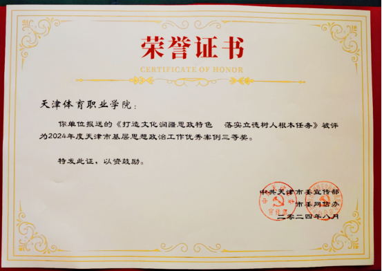 由天津市委宣傳部、市委網(wǎng)信辦主辦的2024年天津市基層思想政治工作優(yōu)秀案例展示活動評審結(jié)果已于近日揭曉。經(jīng)前期天津市體育局遴選推薦,我院思想政治工作案例《打造文化潤疆思政特色 落實立德樹人根本任務(wù)》最終成功入選2024年天津市基層思想政治工作優(yōu)秀案例并榮獲三等獎。