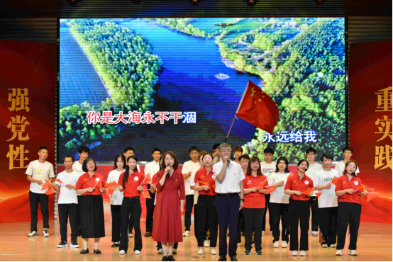 學(xué)院黨委書記楊軍、黨委副書記、院長(zhǎng)王偉帶領(lǐng)思政課部教師和學(xué)生獻(xiàn)唱歌曲《我和我的祖國(guó)》
