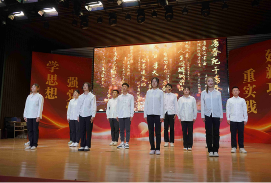 組宣部部長(zhǎng)劉巖博、教務(wù)處教師彭興童朗誦《我是共產(chǎn)黨員》