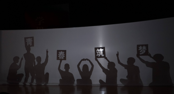 教師李文學(xué)、韓曉寧、唐家閣與學(xué)生合唱《青春》