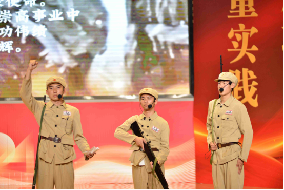 活動(dòng)以“理論宣講+文藝演出”形式展現(xiàn),由學(xué)院領(lǐng)導(dǎo)班子成員講授微黨課,帶領(lǐng)全體師生回溯歷史,從新民主主義革命時(shí)期、社會(huì)主義革命和建設(shè)時(shí)期、改革開(kāi)放和社會(huì)主義現(xiàn)代化建設(shè)新時(shí)期到中國(guó)特色社會(huì)主義新時(shí)代,生動(dòng)且深刻地展示了中國(guó)共產(chǎn)黨一經(jīng)成立就把實(shí)現(xiàn)共產(chǎn)主義作為最高理想和最終目標(biāo),確立起為中國(guó)人民謀幸福、為中華民族謀復(fù)興的初心和使命,將理論宣講融入精心編排的文藝節(jié)目中,以師生喜聞樂(lè)見(jiàn)的文藝形式,傳播好聲音,唱響主旋律,打造“黨建+大思政”的育人平臺(tái)。