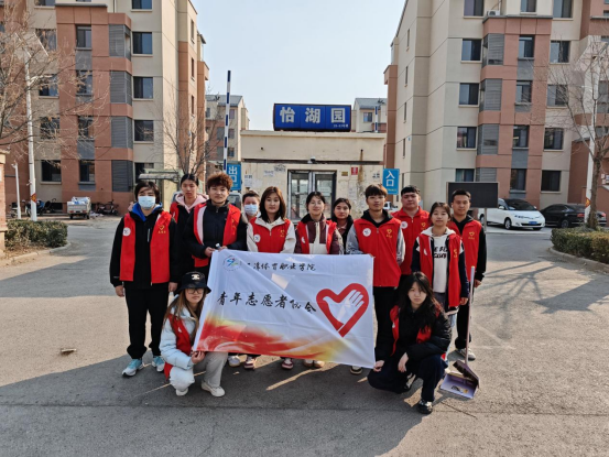 當天下午,院青協成員們走進怡湖園社區,開展社區志愿服務活動。志愿者們分組行動,各自奔赴負責區域。他們手持掃帚、簸箕等清潔工具,對社區公共區域展開全方位清掃。無論是道路上散落的雜物,還是樓道角落沉積的灰塵,皆仔細清理,確保每一處衛生死角都得到徹底整治。