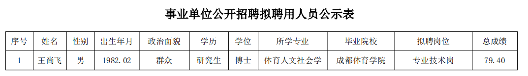 附:事業單位公開招聘擬聘用人員公示表